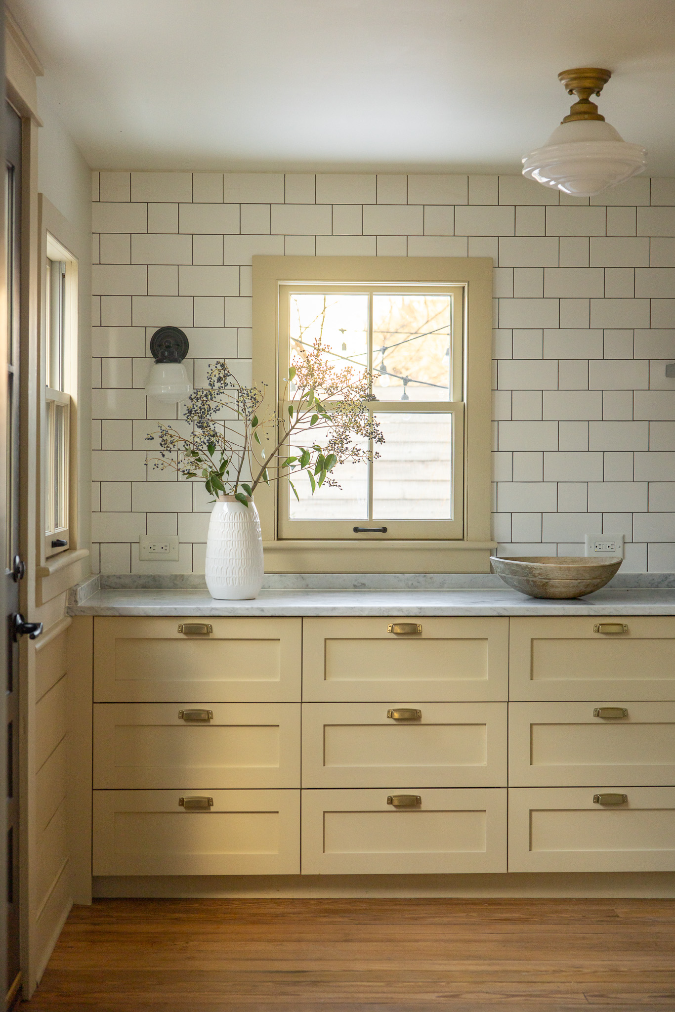 In addition to custom millwork providing ample storage, the kitchen also features marble countertops, subway tile backsplash, designer lighting, and stainless steel appliances. The kitchen also provides access to both the lower-level with laundry and utilities, and the rear patio.