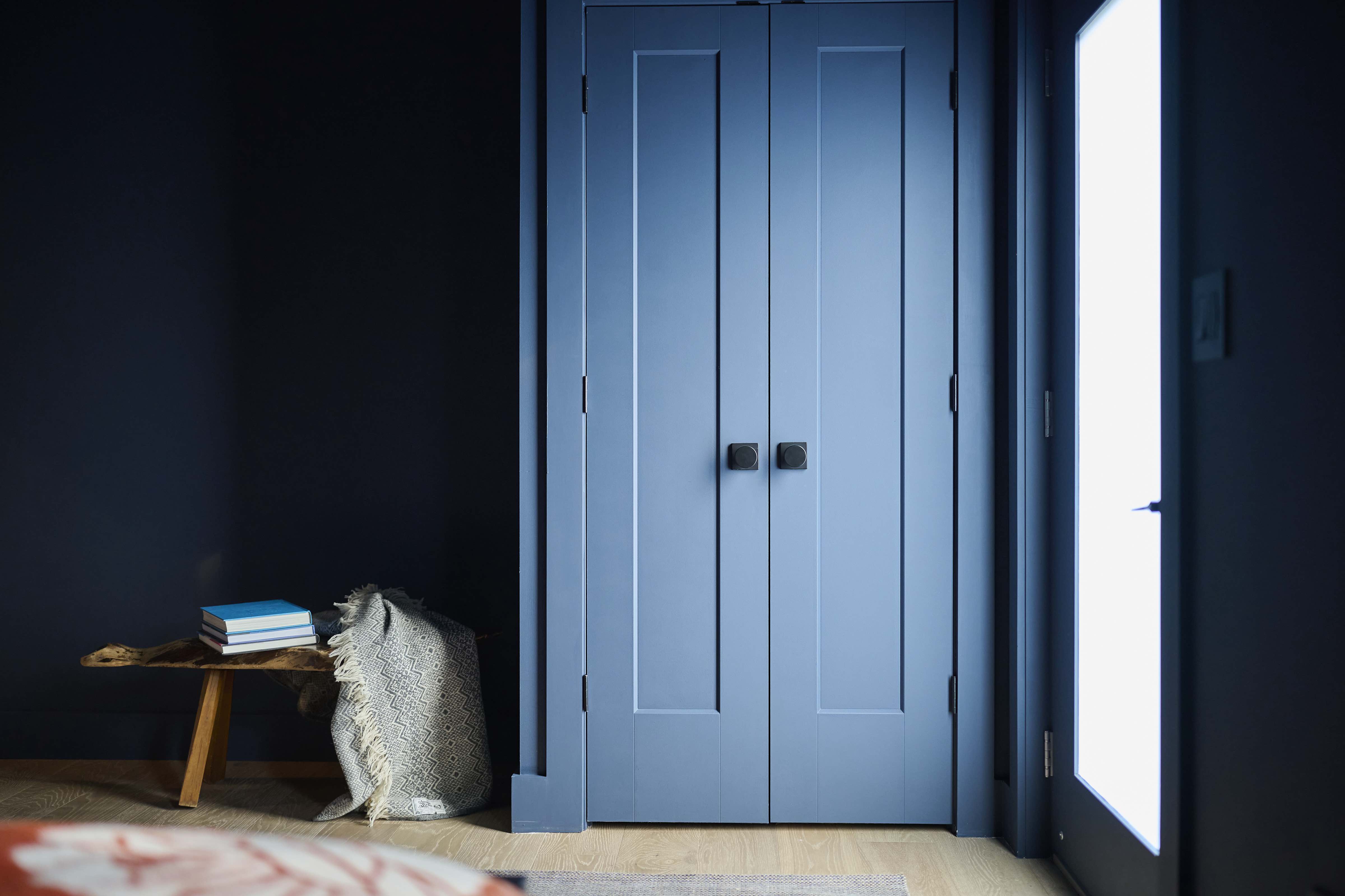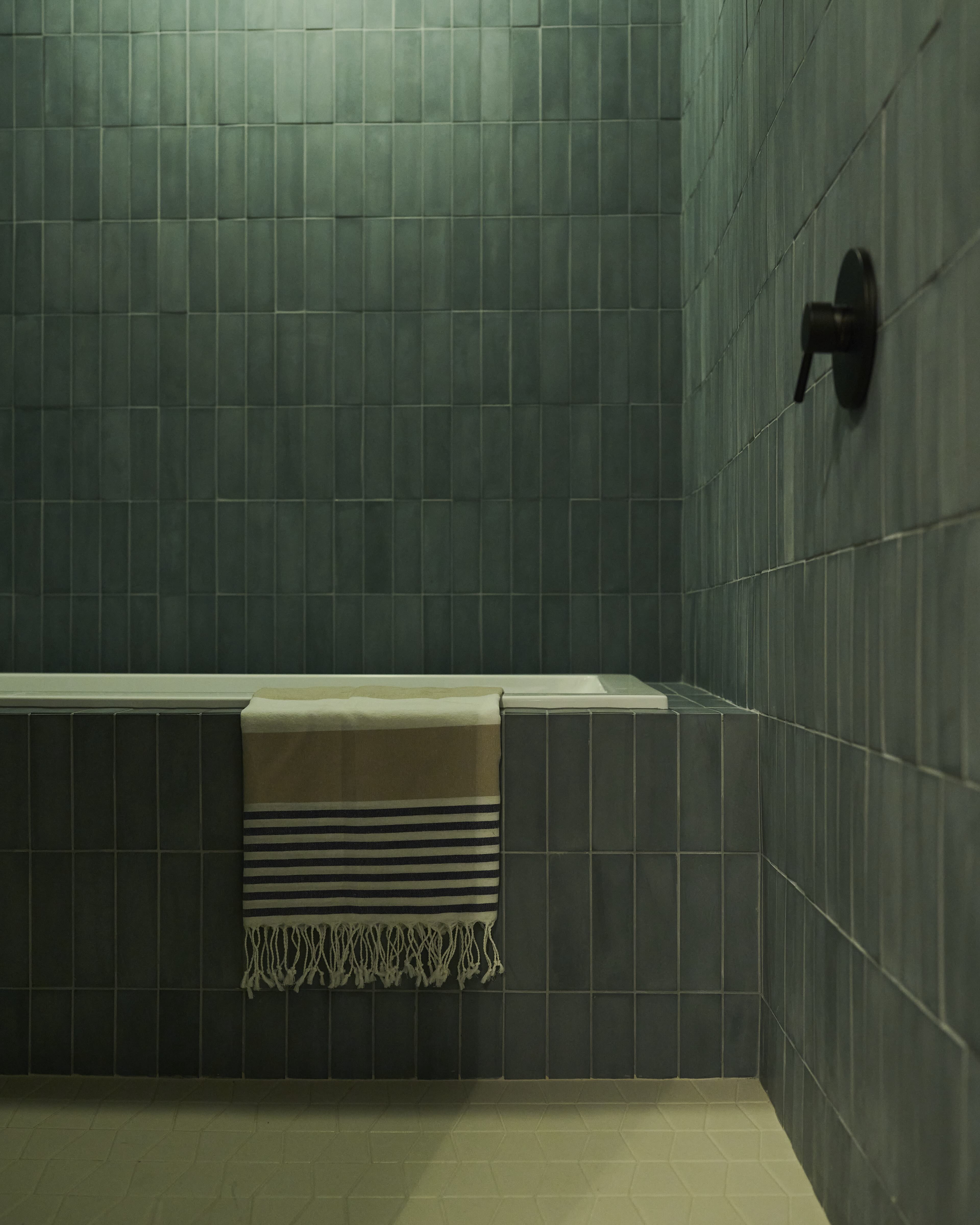 Wind down the wide staircase to the ground floor’s private quarters. At the end of a hall, the private king-sized primary suite boasts a wall of sliding glass leading directly to the pool - perfect for midnight skinny dips. Freshen up before a night on the (small) town in an ensuite bath with a spa-style wetroom, including a deep soaking tub and rainfall shower clad in soft teal blue tiles, complimented by a large walk-in closet for your country-chic fashion. Also on this level is a rich moody blue guest bedroom with a private door to an exterior walkway that connects to the pool. With practicality not overlooked, a laundry room with a washer and dryer, and a generous utility room provide ample space for storage.
